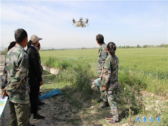 十运村党支部书记、阜康市新天业种植专业合作社理事长闫新虎介绍,今年气候异常,地温比往年低,小麦发病率高,为了抢抓农田作业时间,今年合作社第一次使用无人机对小麦农田喷药施肥作业,相比传统农田作业,技术更安全,效率更高效,可以减少20%以上的农药用量,每亩成本比人工低2元,既节约了成本,又节省了人力和时间,更加有利于应对异常天气过程。