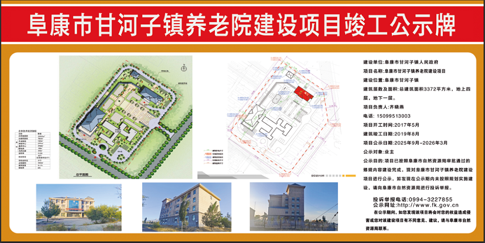 阜康市甘河子镇养老院建设项目竣工公示牌