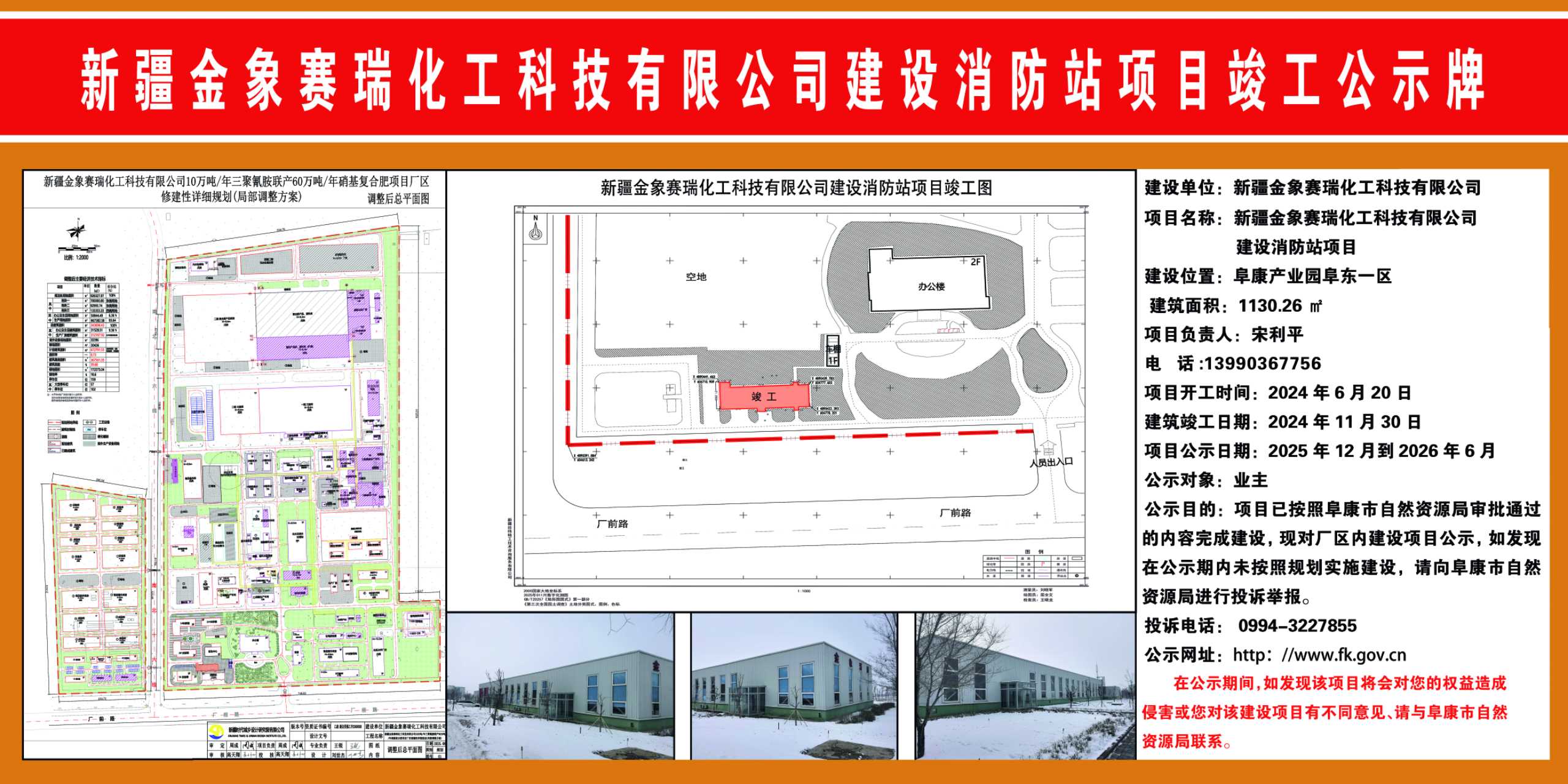 新疆金赛瑞化工科技有限公司建设消防站项目竣工公示牌