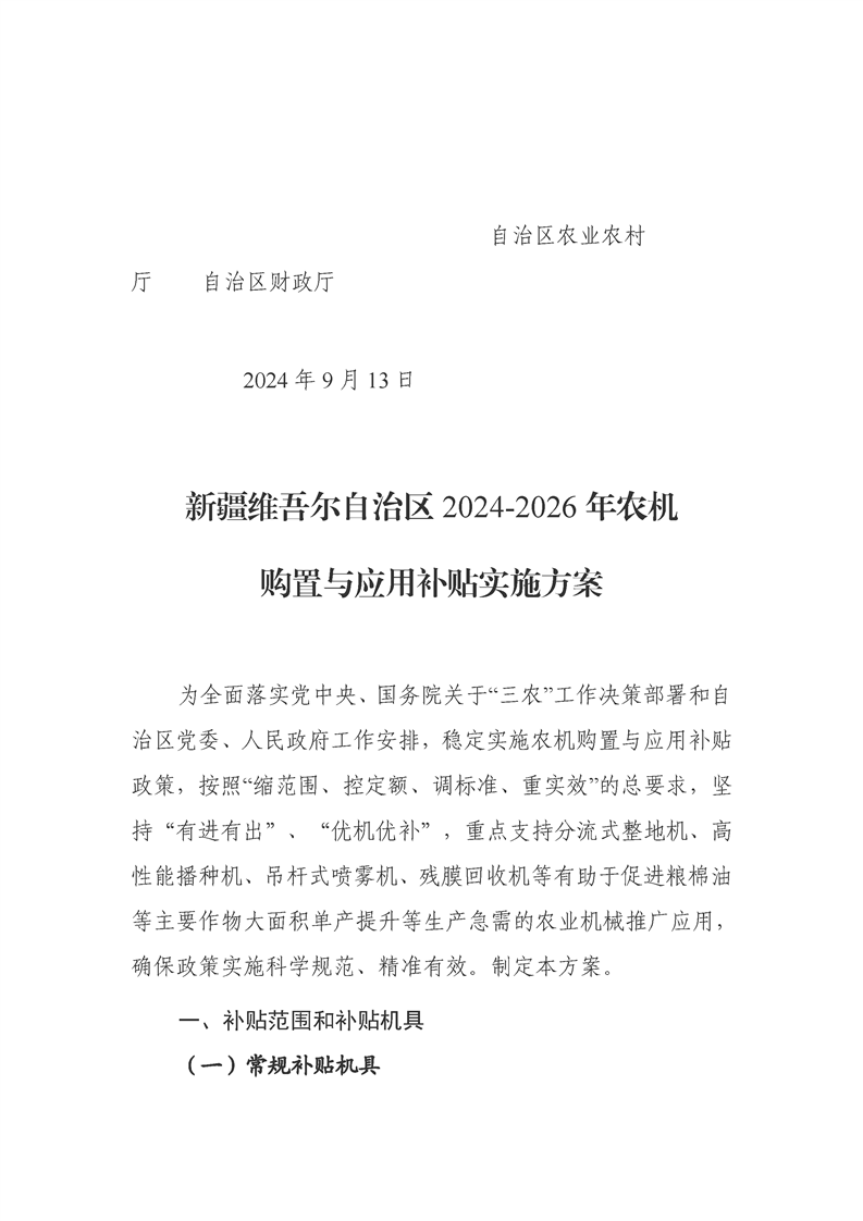 【政策依据】阜康市2024年农机购置补贴文件依据