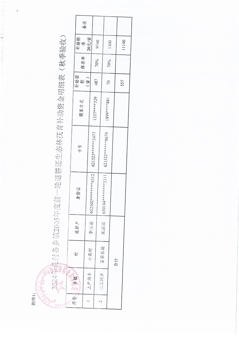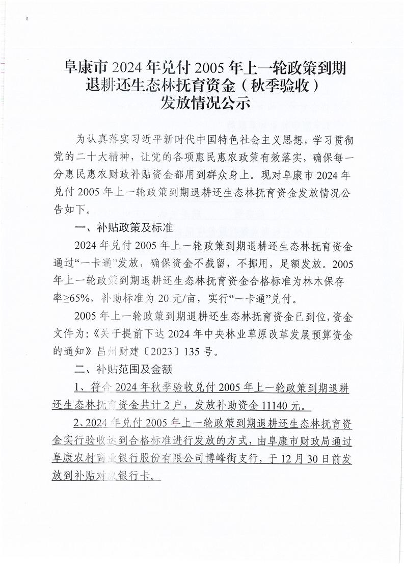 阜康市2024年兑付2005年上一轮政策到期退耕还生态林抚育资金(秋季验收)发放情况公示
