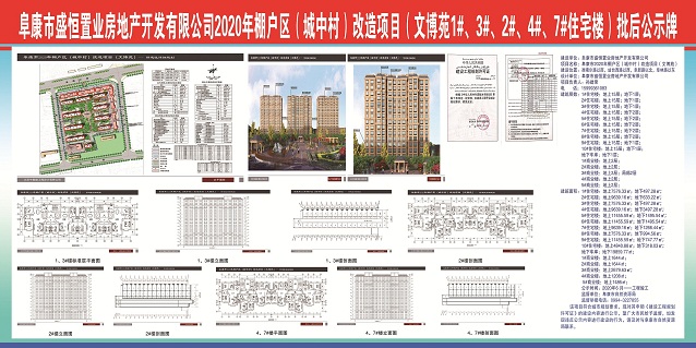 | 名 称 | 阜康市盛恒置业房地产开发有限公司2020年棚户区(城中村)改造项目(文博苑1#、3#、2#、4#、7#住宅楼)批后公示牌 | ||