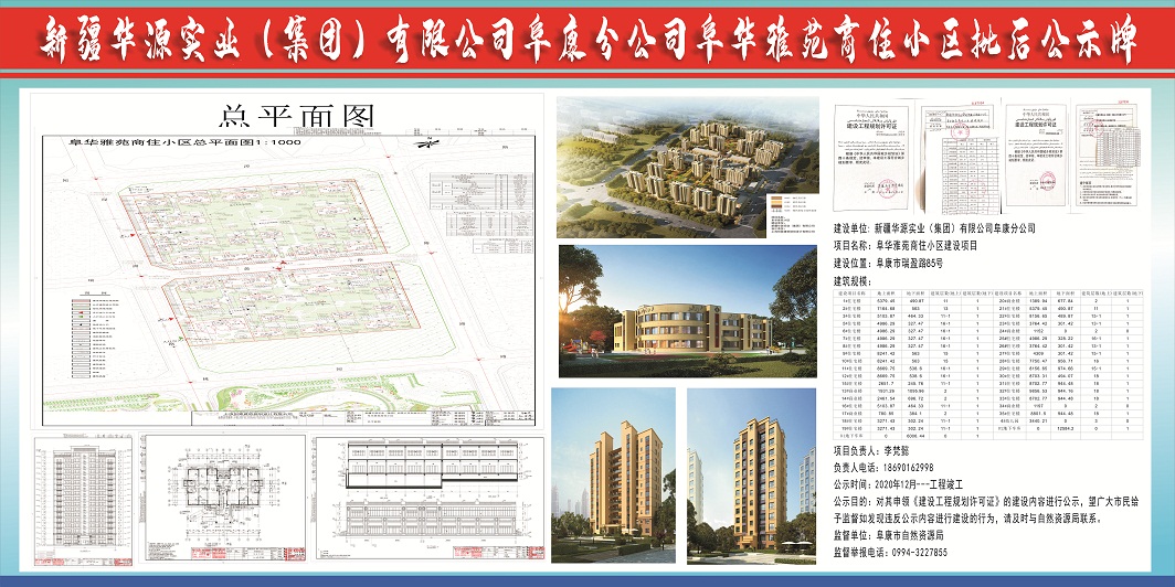 新疆华源实业(集团)有限公司阜康分公司阜华雅苑商住小区批后公示牌