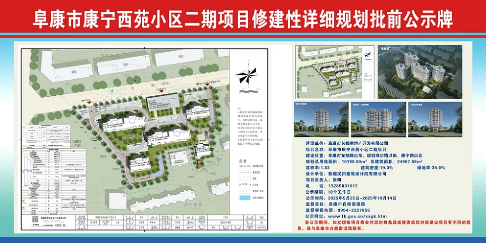 阜康市康宁西苑小区二期项目修建性详细规划批前公示牌