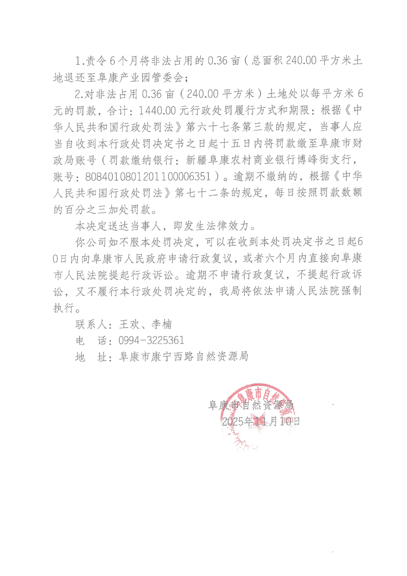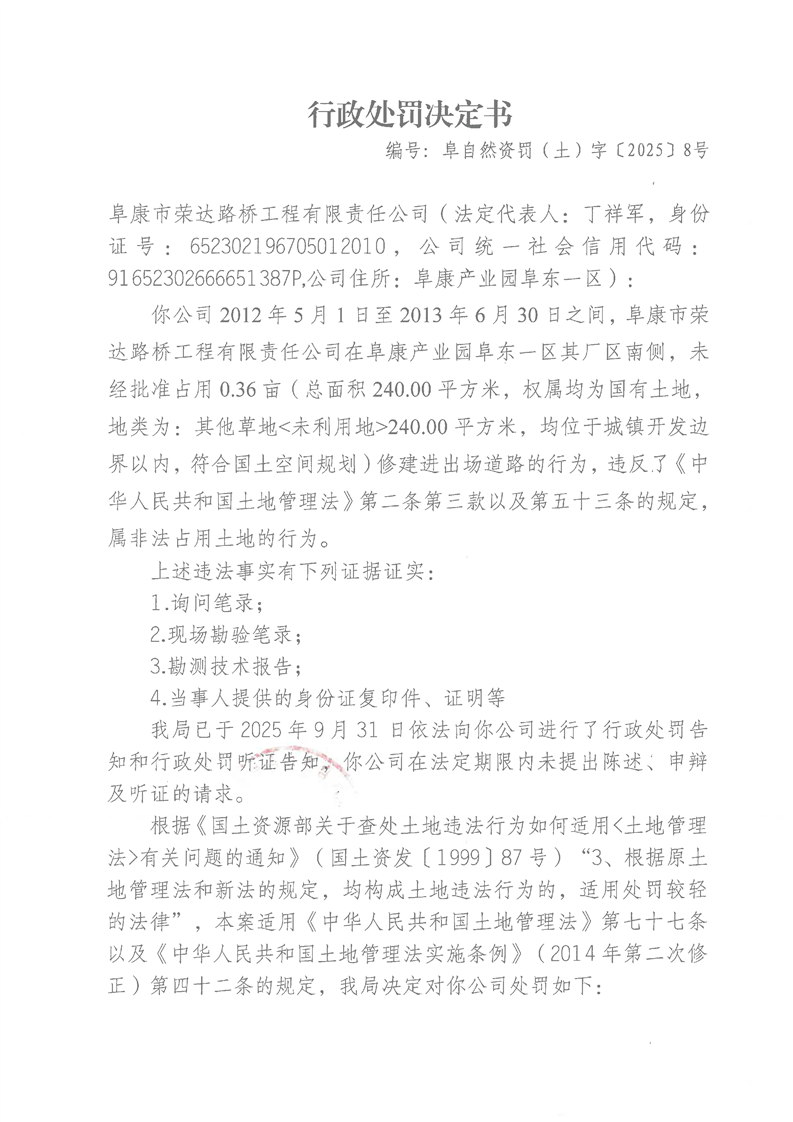 【行政处罚】阜康市荣达路桥工程有限责任公司行政处罚公示