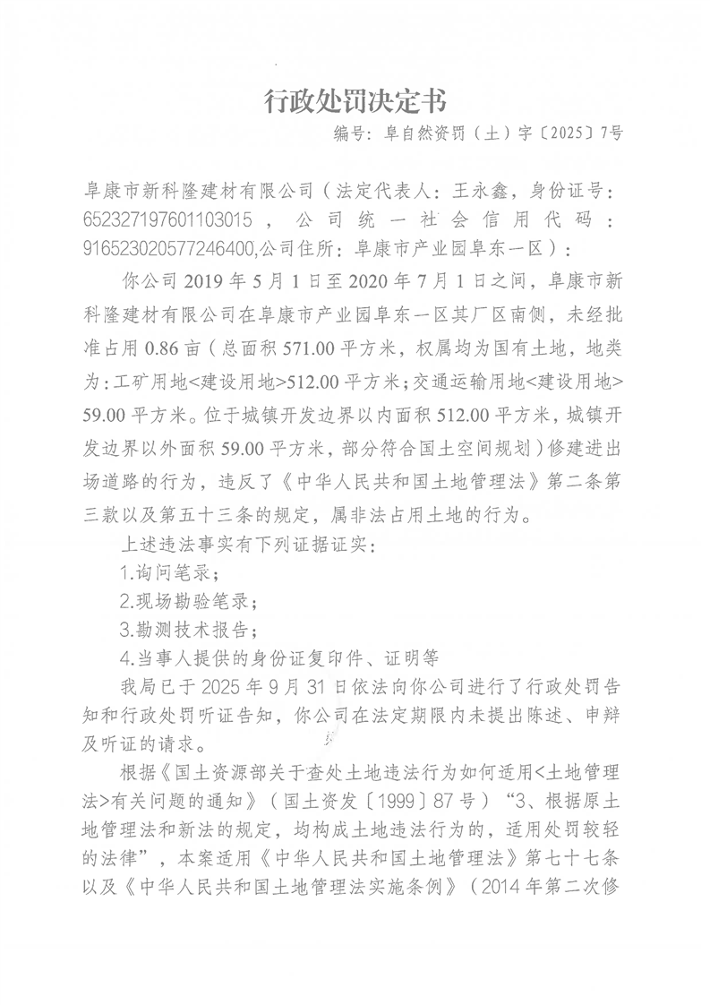 【行政处罚】阜康市新科隆建材有限公司行政处罚公示
