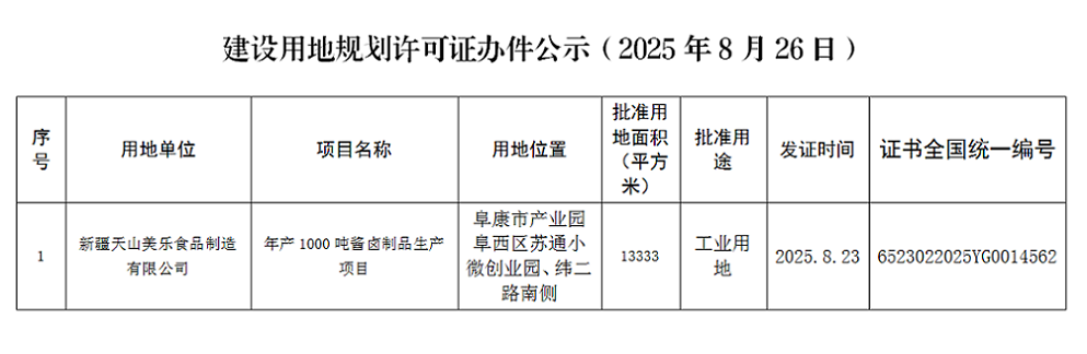 【行政许可】阜康市自然资源局2025年8月26日关于建设用地、临时建设用地规划许可办件公示
