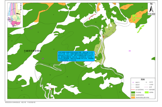 拟使用阜康国有林管理局林地总面积0.1420公顷,均为修筑直接为林业生产服务的巡护使用林地。按地类分为乔木林地0.0971公顷,其他林地(未成林造林地)0.0449公顷;按林种分为自然保护林0.0971公顷、其他林地0.0449公顷;按使用林地类型分为特种用途林0.0971公顷、其他林地0.0449公顷;按起源分为天然林0.0971公顷、人工林0.0449公顷;林地林木权属为国有;按森林类别分为国家级二级公益林地0.0319公顷、地方公益林地0.1101公顷;按林地保护等级为Ⅱ级保护林地0.0319公顷、Ⅲ级保护林地0.1101公顷;该项目拟使用林地范围内优势树种为云杉、山杏。本项目利用林间空地,不涉及林木采伐。