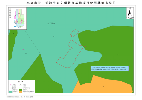 阜康市天山天池生态文明教育基地项目使用阜康国有林管理局林地总面积0.3089公顷,均为永久使用林地;按地类划分均为其他林地;按林地权属划分均为国有林地;按林地保护等级划分均为Ⅱ级保护林地;按森林类别划分均为国家级Ⅱ级公益林地;按使用林地类型划分均为其他林地;按林种划分均为其他;按起源划分均为其他;使用林地范围内无优势树种,不涉及林木采伐。