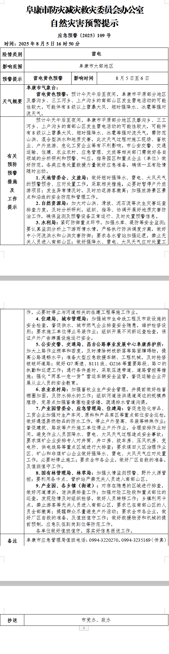 名 称 | 阜康市防灾减灾救灾委员会办公室 自然灾害预警提示 | ||