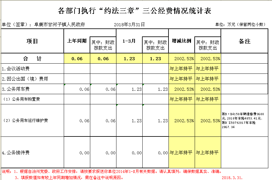 甘河子镇2018年3月三公经费统计表