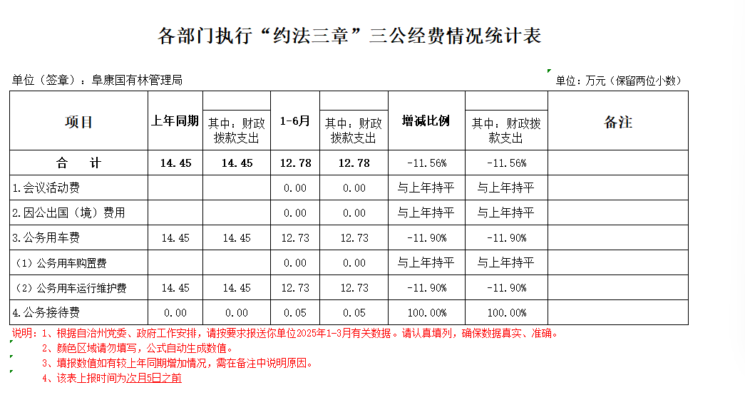 2025年阜康国有林管理局执行“约法三章”三公经费情况统计表(第二季度)