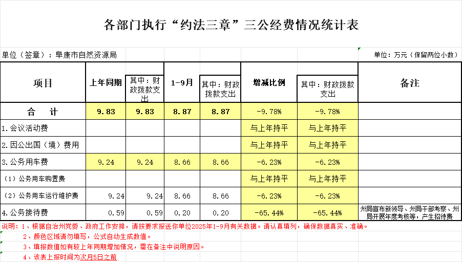 | 名 称 | 阜康市自然资源局2025年第三季度三公经费情况统计表 | ||