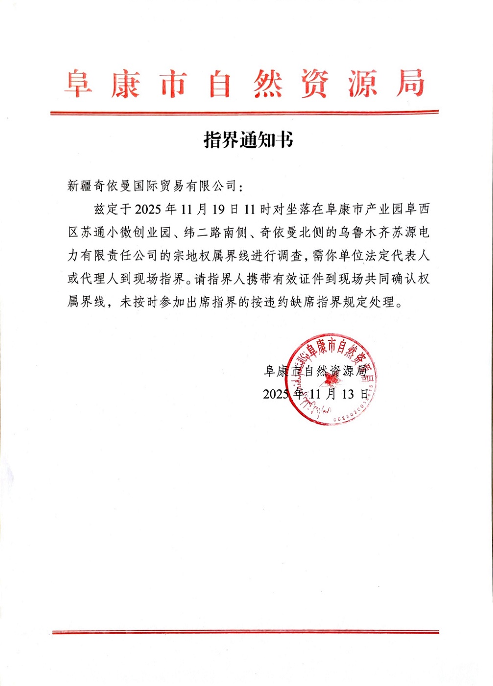指界通知书(新疆奇依曼国际贸易有限公司)