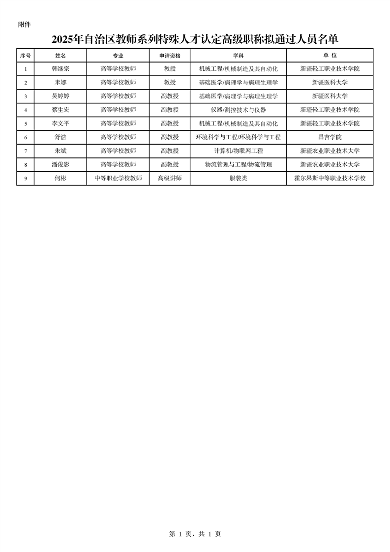 | 名 称 | 【义务教育】2025年自治区教师系列特殊人才认定高级职称结果公示 | ||