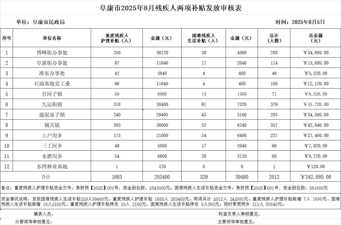 【残疾人两补】阜康民政局关于2025年8月阜康市民政局关于残疾人两补公开信息