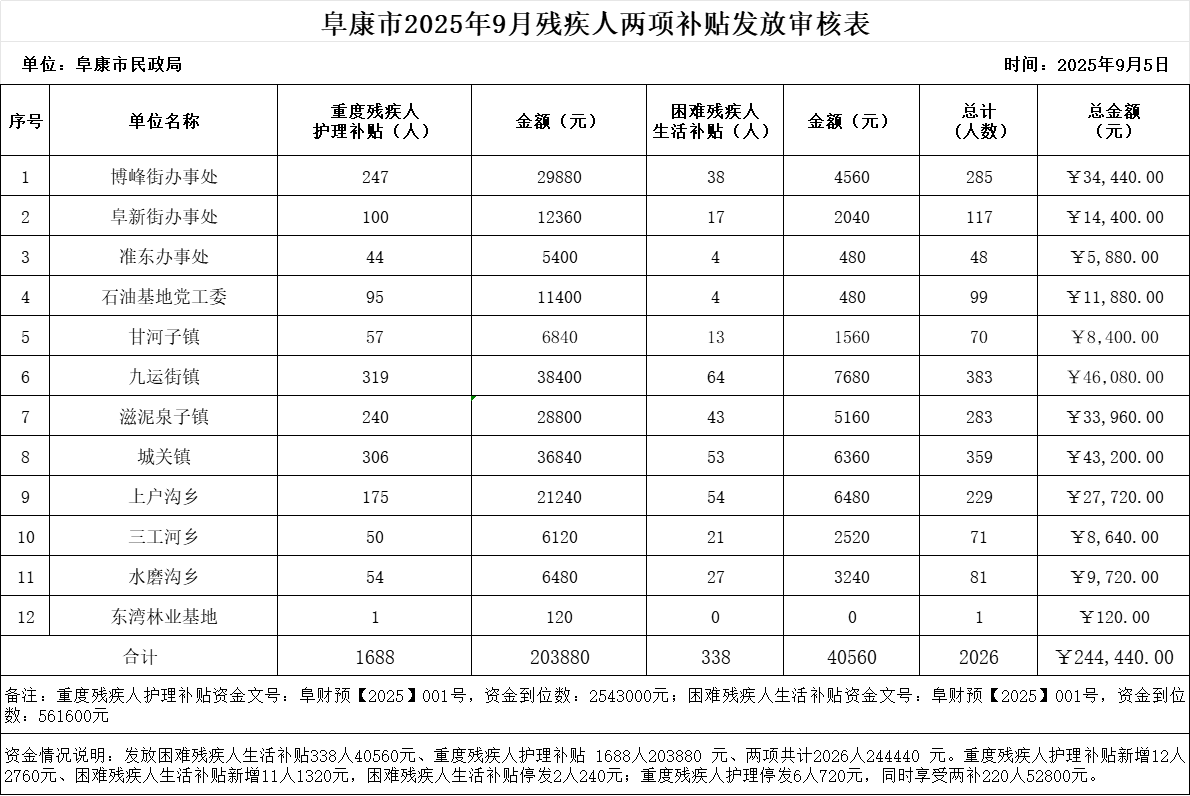 【残疾人两补】阜康民政局关于2025年9月阜康市民政局关于残疾人两补公开信息