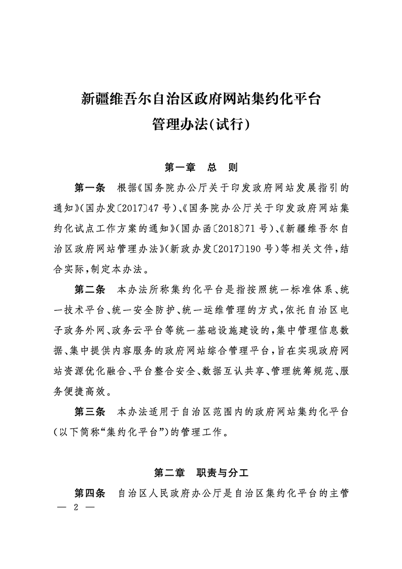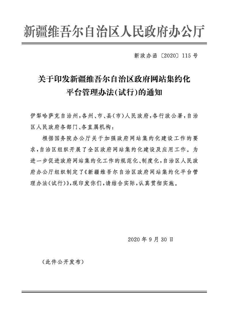 关于印发新疆维吾尔自治区政府网站集约化平台管理办法(试行)的通知