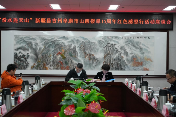 汾河之畔叙深情,天山脚下话同心。11月10日,“感恩山西援疆情・共绘晋阜新篇章”对口支援15周年红色感恩行见面会在山西太原举行。来自阜康市各行各业的33名代表与山西省相关部门欢聚一堂,共忆15载援疆历程,共话两地深厚情谊,共商未来合作大计。