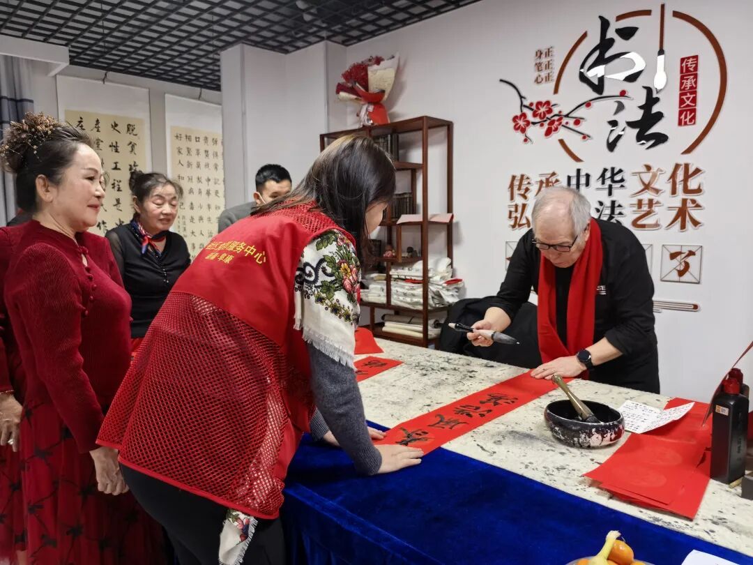 活动现场,书法爱好者现场挥毫泼墨,书写“福”字与春联,将新春的美好祝福凝于笔端,引来在场居民的热情围观,墨香四溢中尽显中华优秀传统文化的魅力。