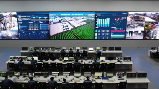 中泰化学阜康能源智慧化工园区数字运行平台,工作人员正在有序工作。魏鹏慧 摄