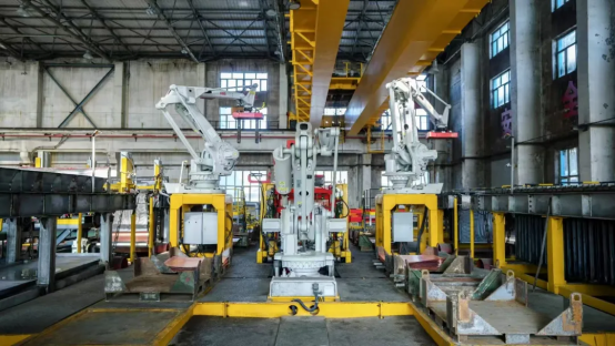 在新疆五鑫铜业,电解车间始极片剥片机器人作业中。刘媛 摄