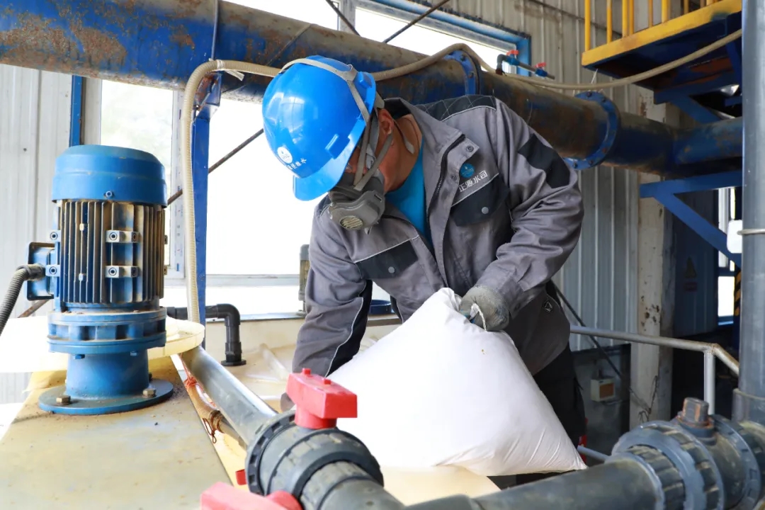 在阜康市滋泥泉子镇白杨河水厂,工作人员正在进行药剂投加操作,确保供水设备稳定运行。杨涛 摄