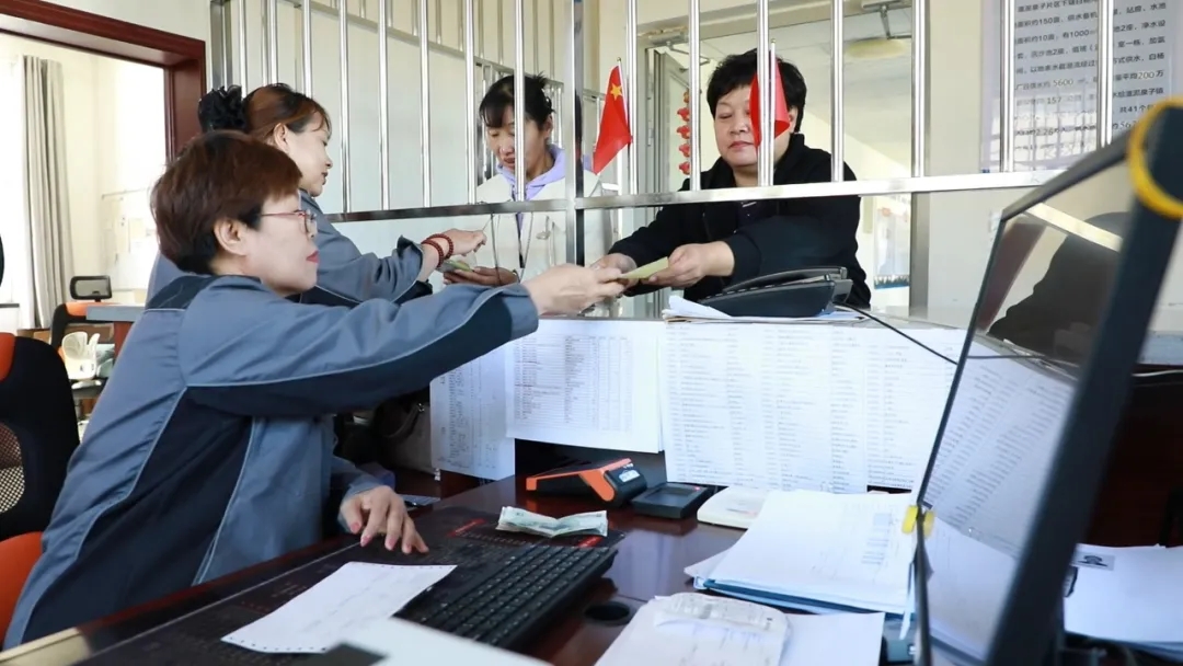 在阜康市滋泥泉子镇的供水营业大厅内,周边居民正有序办理水费相关业务。杨涛 摄