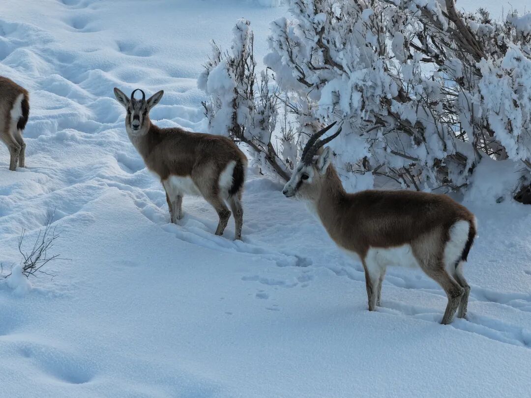 而在上户沟乡的广袤草场上,另一番灵动景象同步上演——国家二级保护动物黄羊(鹅喉羚)也如期而至,踏雪而行、悠然觅食。雪后的草场里,它们低头啃食裸露的枯草,构成一幅人与自然和谐共生的图景。