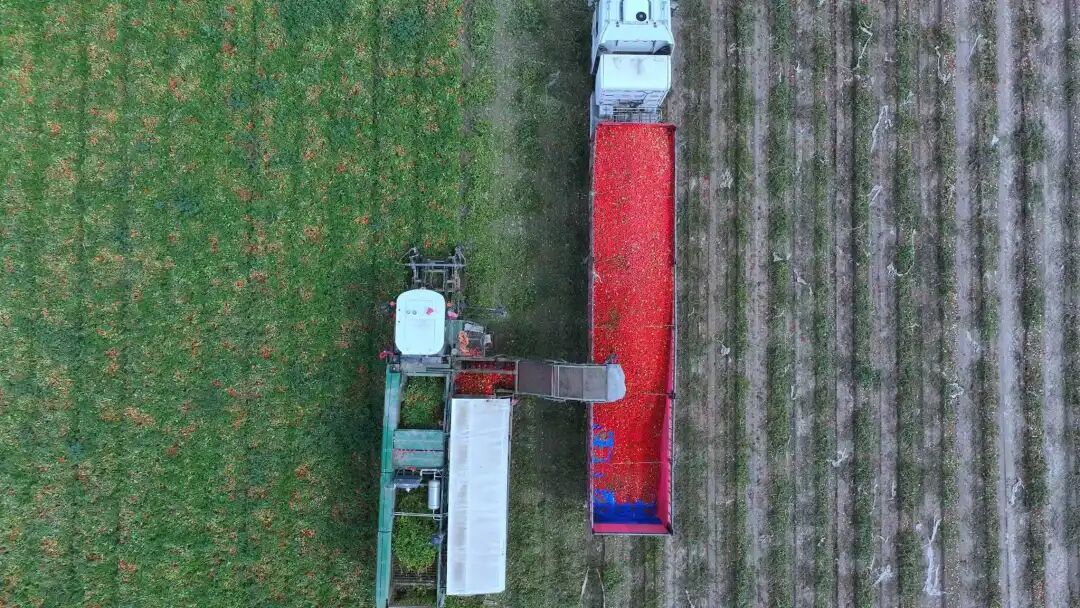 机械化采收番茄。魏鹏慧 摄