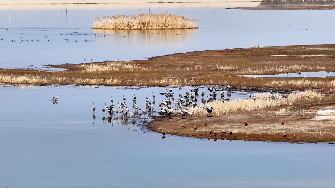 小泉水库地处中亚候鸟迁徙带关键节点,是候鸟北迁途中重要的停歇补给地。每年3—4月,这里都会迎来数万只候鸟,其中不乏灰鹤、白鹭等国家二级保护动物,以及列入《世界自然保护联盟》濒危名录的珍稀鸟类。充足的水源、丰富的水生生物与安全的栖息环境,让这里成为候鸟长途迁徙中的“能量补给站”。