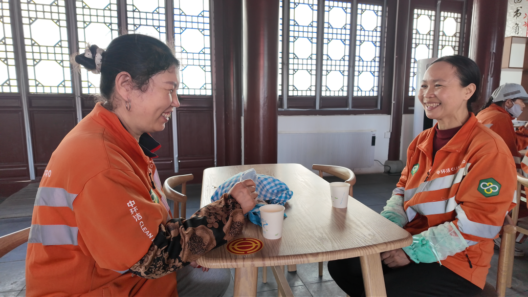 环卫工人在工会驿站休息喝水。张新珍 摄