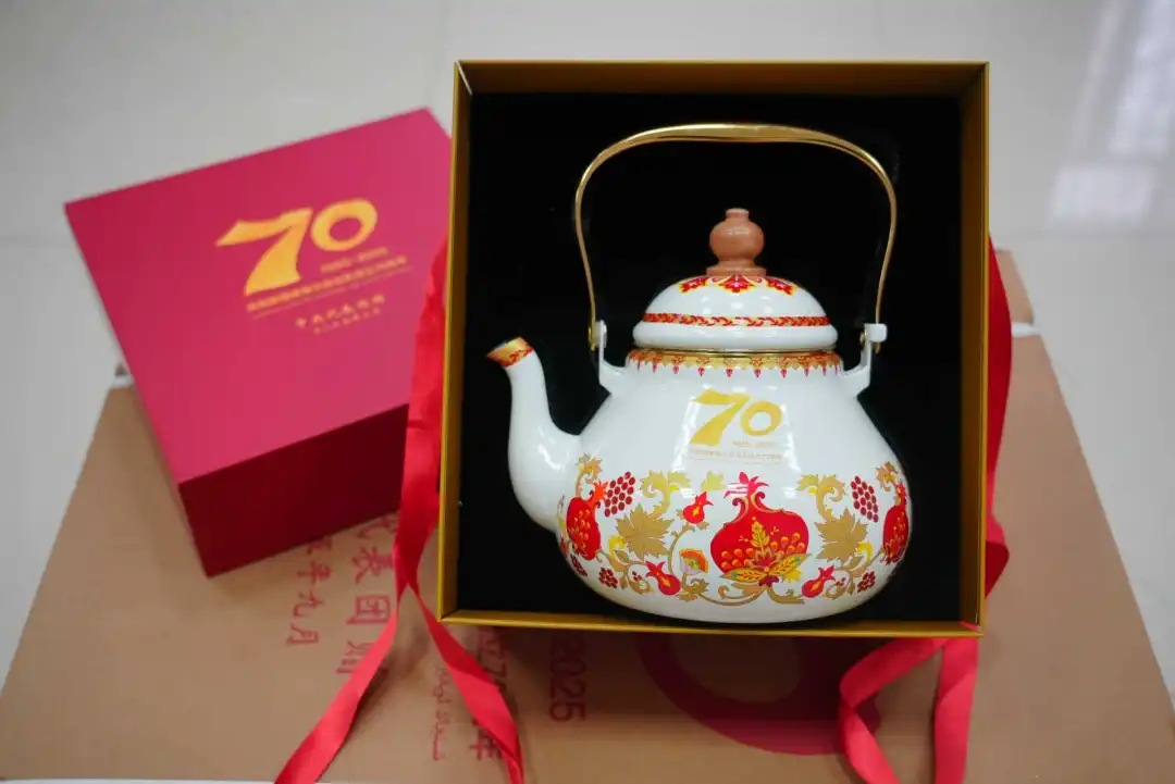 阜康市博峰街道党建专干骆莉萍说:“这批纪念茶壶设计特别用心,把新疆的特色和70周年的喜庆氛围完美融合在了一起。我们已经梳理好了发放清单,会重点送到老党员、劳动模范和基层一线工作者手中,让这份承载着自治区关怀的礼物,传递到每一位为阜康发展付出努力的人身边。”