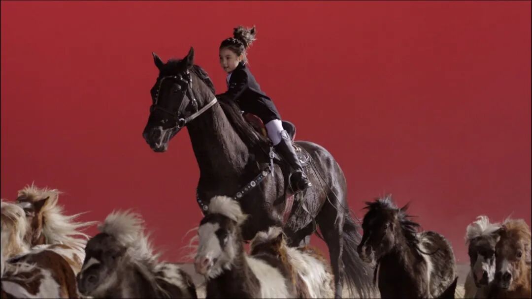 极致冬景之中,万马奔腾踏雪而来。各民族青年闪现其中,展现各民族共同家园的全域图景。