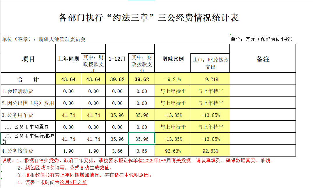 | 名 称 | 2025年天池管委会执行“约法三章”三公经费情况统计表(12月) | ||