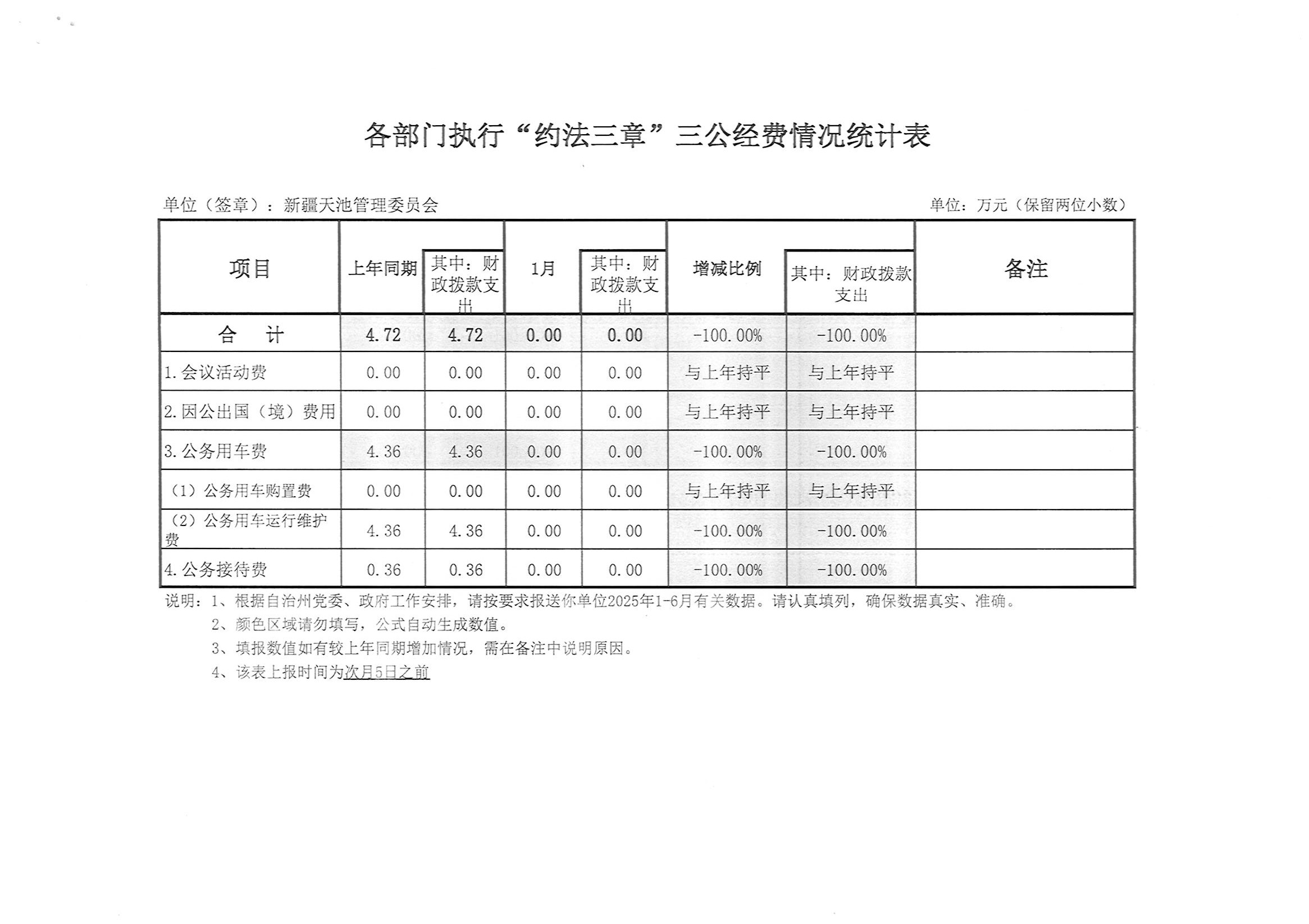 2026年新疆天池管理委员会执行约法三章“三公经费”情况统计表(1月)