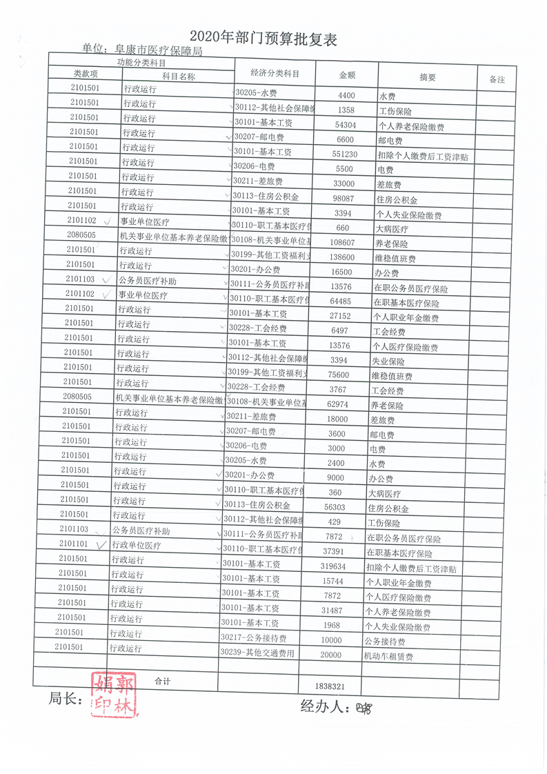 | 名 称 | 阜康市医疗保障局2020年财经预算批复 | ||