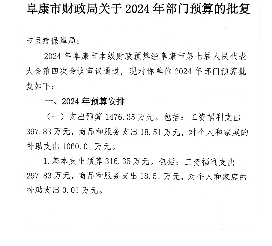 【预决算】阜康市财政局关于2024年部门预算的批复