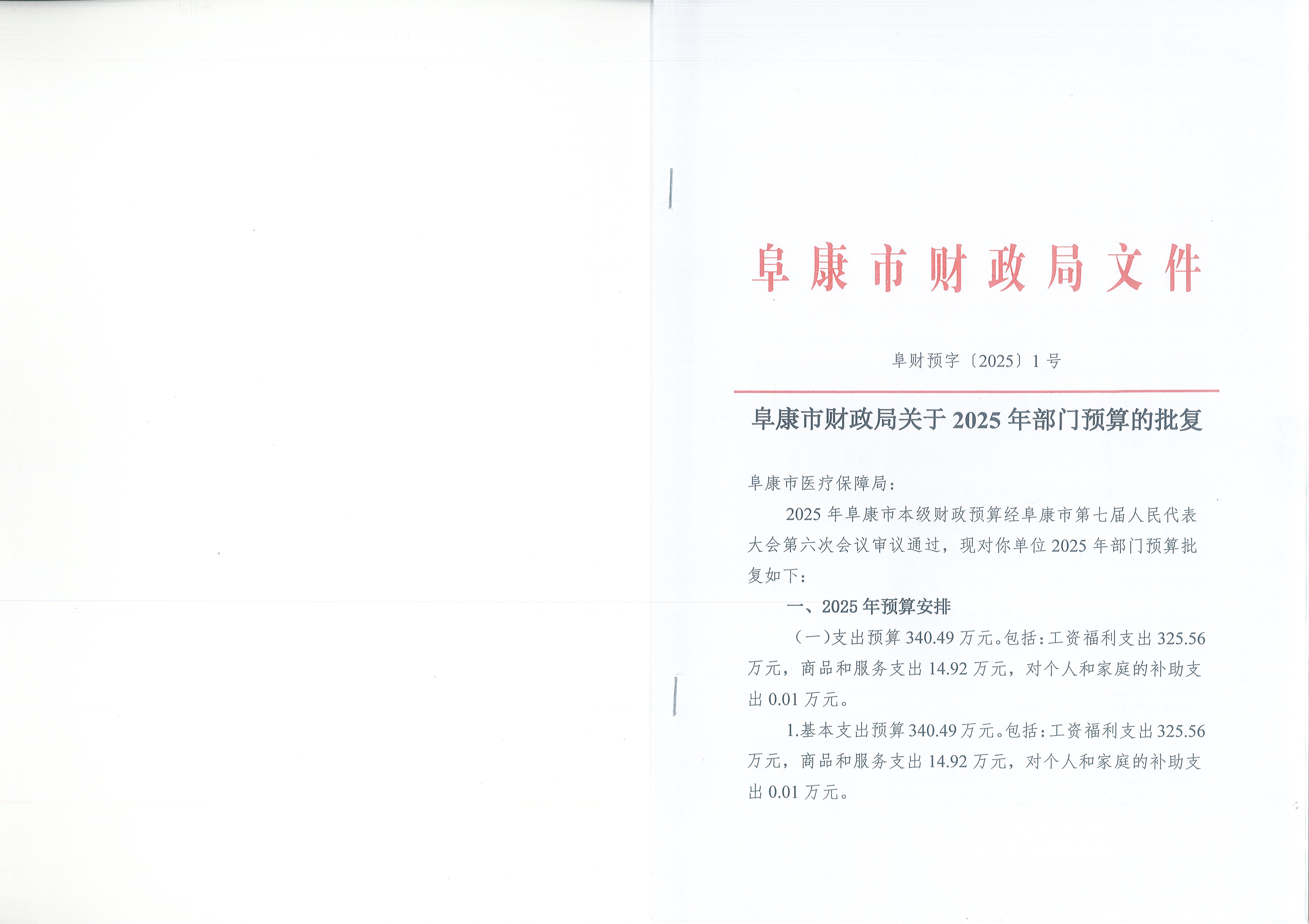 【预决算】阜康市财政局关于2025年部门预算的批复