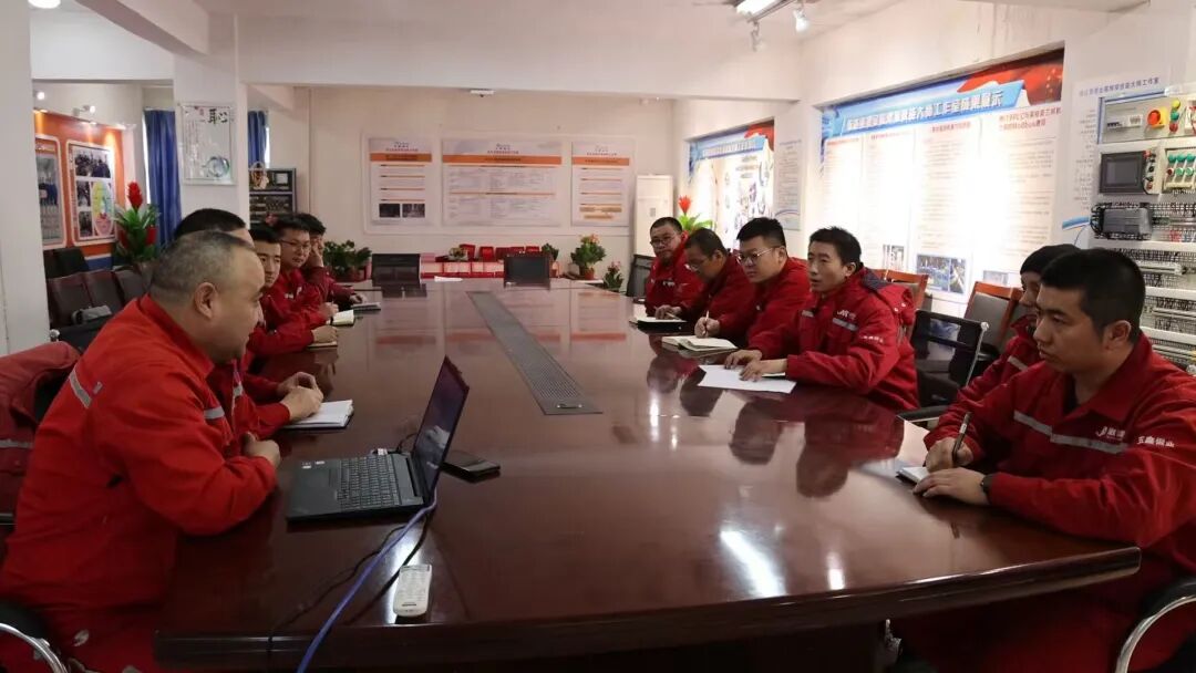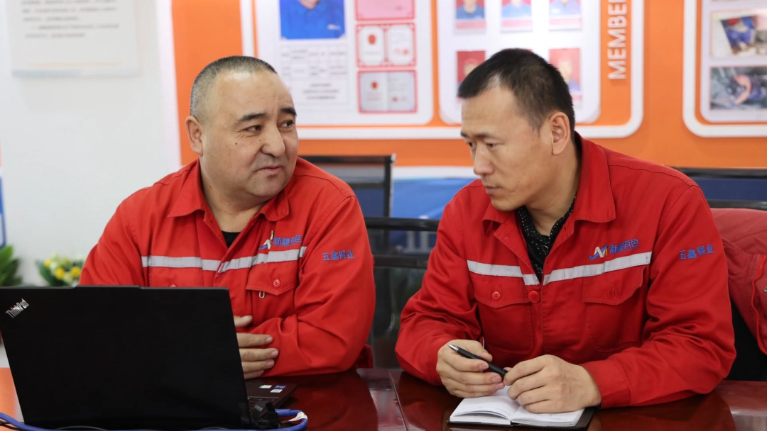 在新疆五鑫铜业的依达亚提技能大师工作室,依达亚提・拜斯拉木正和成员研讨技改问题。杨涛 摄
