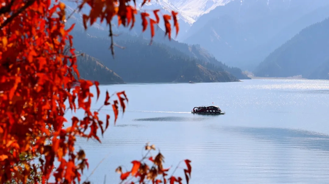 秋霜染天山,天池入画来。秋日的天山天池,层林尽染,五彩斑斓。蓝天映着雪山,密林环绕湖水,绿、红、黄交织成一幅“四季融一景”的画卷。游客徜徉林间,步移景换,尽享大自然的美妙与旖旎。