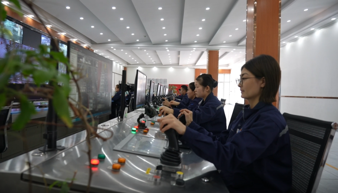 中泰矿冶操作工远程操控智能料面机。张鹏 摄