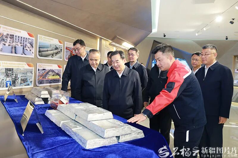 3月25日,自治区党委书记陈小江、自治区主席艾尔肯·吐尼亚孜在位于洛浦县的和田昆冈经济技术开发区,实地了解新疆昆仑锌业有限责任公司生产运营情况。石榴云/新疆日报记者 崔志坚摄