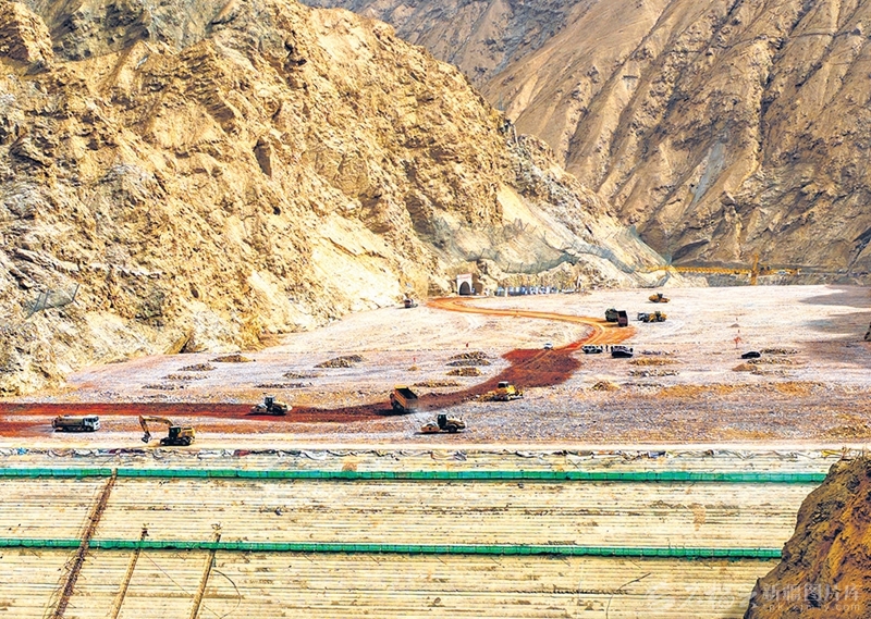 2月25日,玉龙喀什水利枢纽工程施工现场,施工车辆往来穿梭,一派热火朝天的忙碌景象。目前,该项目建设已完成70%。许晓龙摄