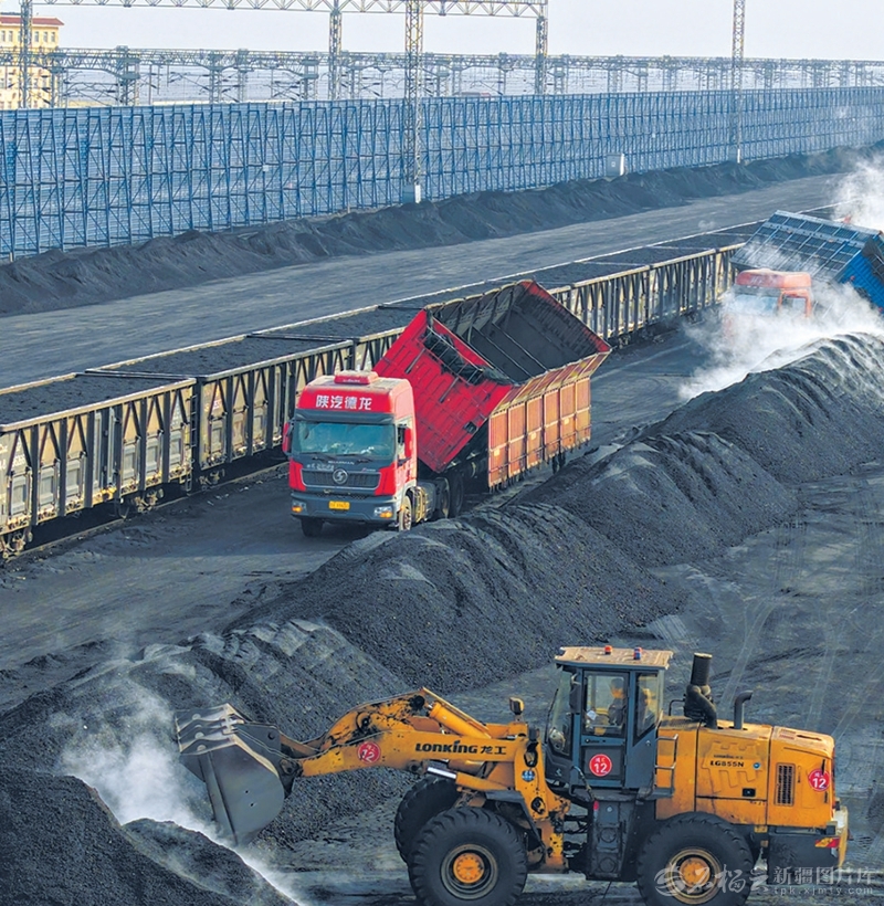 2月23日,一列煤炭专列在哈密铁路物流中心淖毛湖货运部装载煤炭。郭子毅摄
