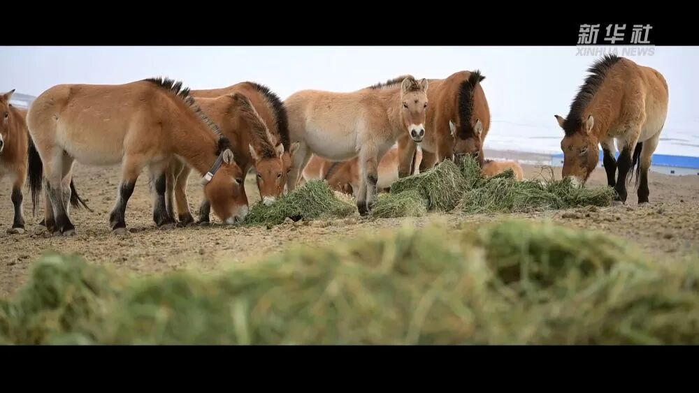 午后阳光穿透云层,洒在草料库外的空地上。那些入冬后返回监测站的野马,还在等待投喂。